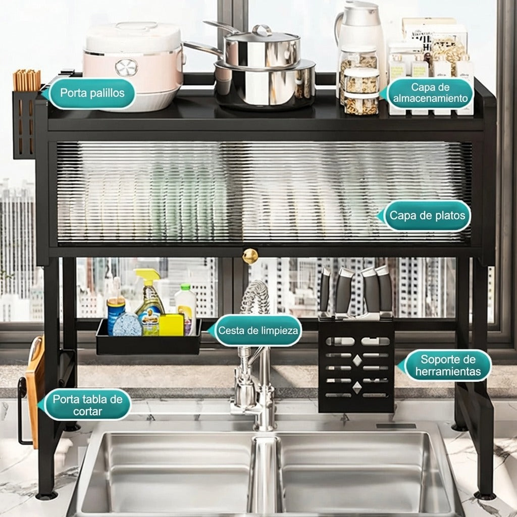 ¡Transforma tu cocina y mantén tus platos siempre limpios y protegidos! Este innovador escurridor sobre el fregadero es la solución definitiva para optimizar el espacio y mantener el orden con un toque de elegancia.